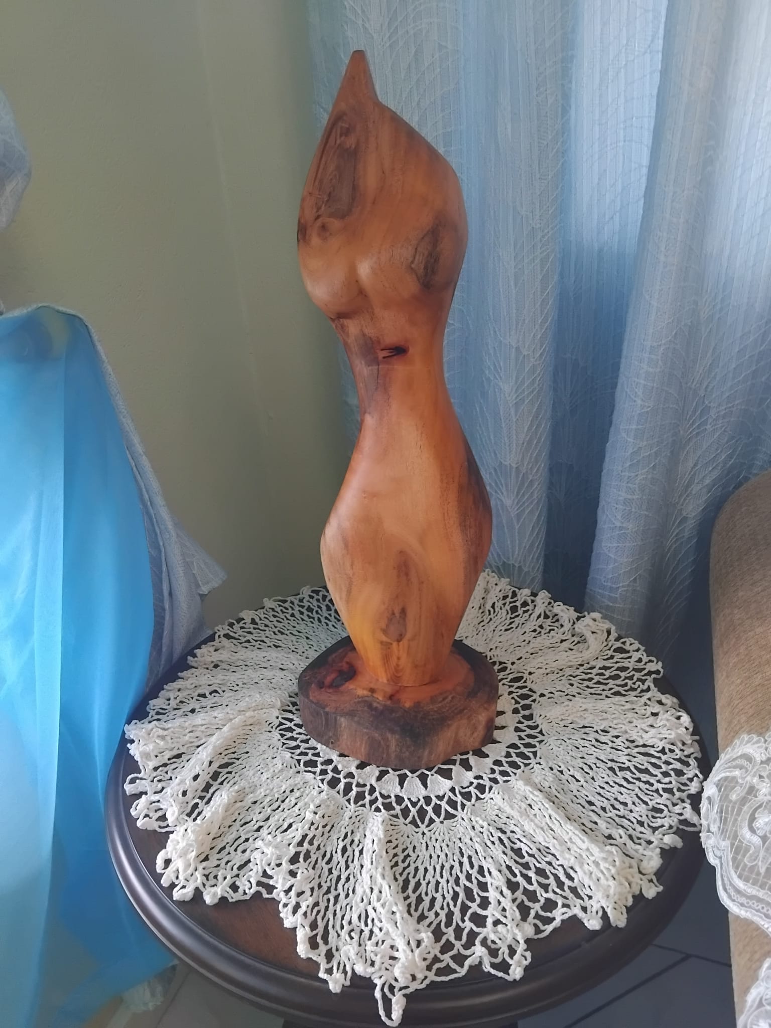 Wooden handcrafted sculpture. Call us at (246) 288-9111 to request, for pricing as well as pickup.